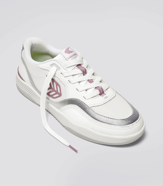 White Leather and Suede Blush Pink Logo, Silver Accents UBA