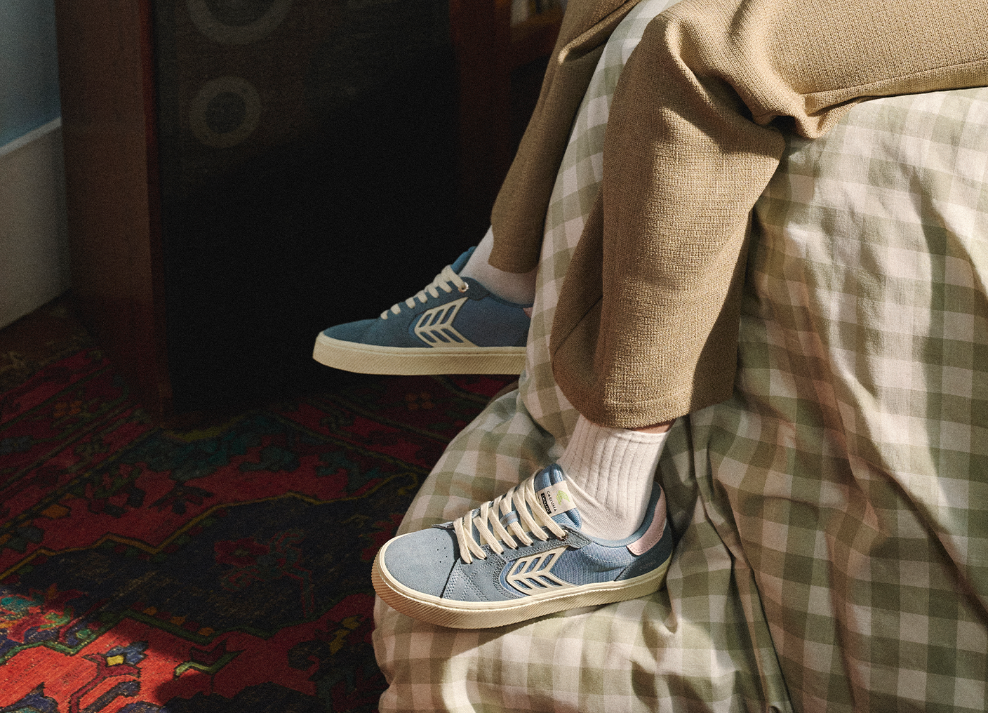 Shop the CATIBA PRO 2.0 Mountain Spring Blue Suede and Cordura Ivory Logo Rose Sneaker