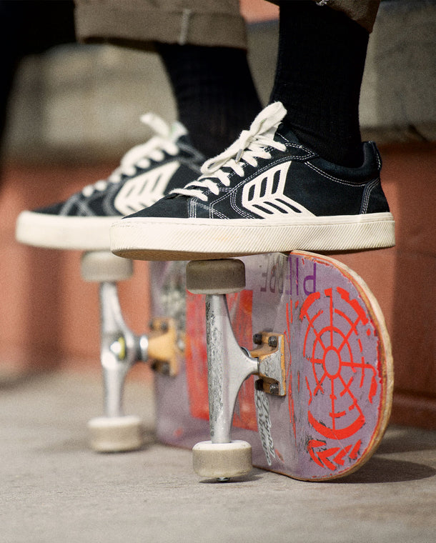 This is my second pair of Catiba Pros, first pair I bought I used them for skating and they were very comfotable although I found the mid role a bit too large making the shoe extremely grippy but also it makes the shoe last longer. Second pair ive bought is just for an everyday shoe, it seems they run a bit small so my toes are slighlty cramped so I can’t wear them a smuch as I’d like. Overall these are great shoes and I love the sustainable aspect of them.
