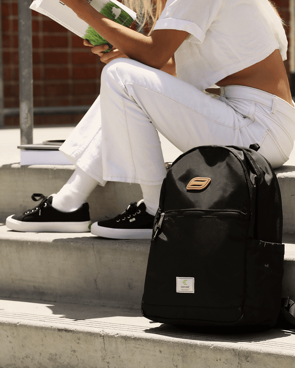 The JJ Backpack fits any laptop 13-17”, with a side pouch for your reusable water bottle and a supportive chest strap. Our roomy, rounded silhouette is crafted with recycled materials from Global Recycled Standard-certified sources.