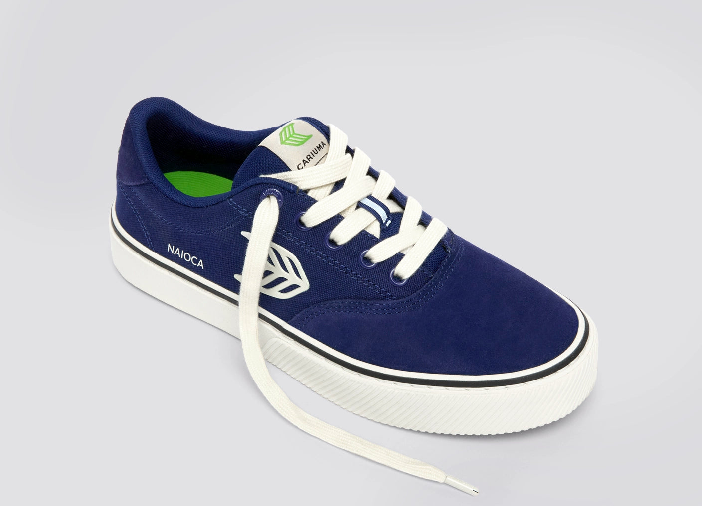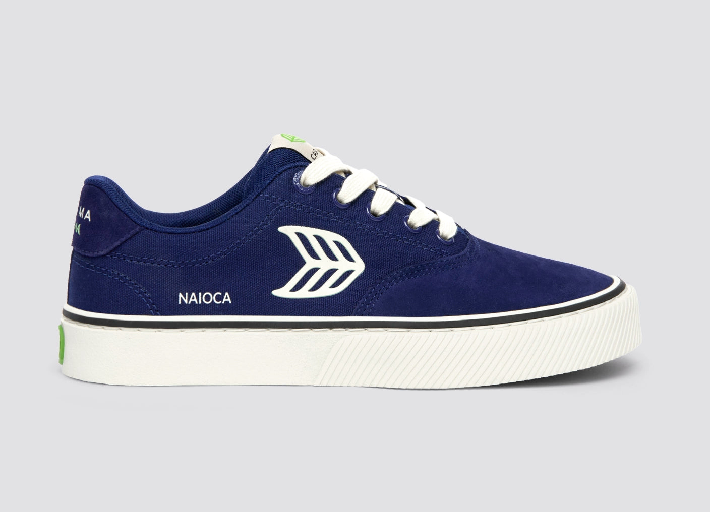 Shop the NAIOCA PRO Marine Blue Suede and Canvas Ivory Logo Sneaker