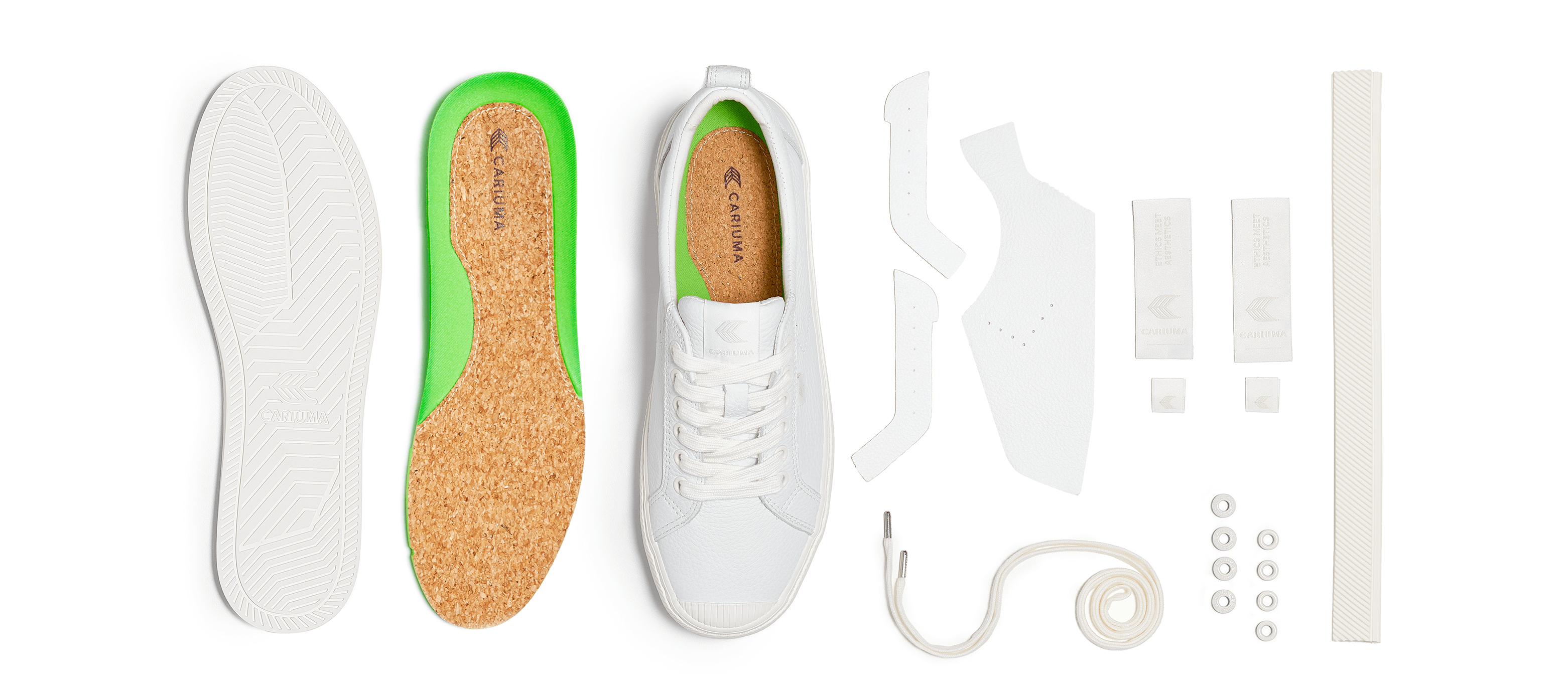 - Laces: Made with rPET + organic cotton, with debossed metal aglets