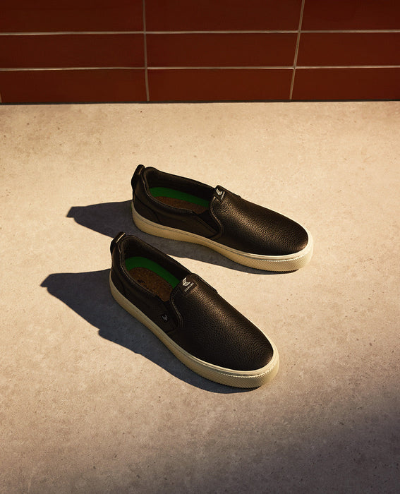 Shop the SLIP-ON Black Premium Leather Sneaker